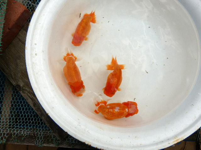 |    ここへきてグッと涼しくなってきましたね。魚にも人間にもとっても良いんじゃないでしょうか。    昨日は東部大会に行ってきました。福島からは7人の参加です。ローカルの支部としては参加率が良い方だと思います。    朝6字過ぎに出て7時頃到着、いつもの場所に行くと青森軍団がベンチ付近にいて合流。テント張りも手伝っていただきとっても助かりました。そうこうしているうちに福島の面々も続々到着。お互いの魚を確認しながらの金魚談義です。    ぼくは審査員を仰せつかっているので早めの魚の受付です。そして運命の担当を決めるくじ引き・・・おいしょ! あ〜当歳魚担当を…。公正なくじ引きなので仕方ありません頑張るのみです。    さすがに親魚は審査が終わるのは早い!当歳魚はまだ半分以上残っています。その後審査の休憩が入ったので、うちの弐歳魚を見に行くと23点の舟にいました!おぉ頑張ったじゃないのw    そして当歳魚の審査再開して間もなくうちの当歳魚が登場、恐る恐るみなさんの点数を見るとオール3点、、なので18点をいただきました。これは洗面器は微妙な感じです。次は番付を決める二次審査開始。19点の魚たちの番付が決まって、いよいよ18点の魚たちです。この中から13尾が洗面器に載ります。ほぼ1/3という感じかな。審査員がこれぞという魚を選んでいきます。するとうちの魚がその中にいました!!ありがとうございます!  てことでうちの当歳魚は西前頭三十枚目に載りました ジ〜ン (感動)    東部大会にはこれまで弐歳・親を出してきて役もいただいてきましたが当歳魚は今回初めて出陳して洗面器の載ったので感激もひとしおです。    写真は弐歳魚です。サイズは申し分のない魚なので期待していましたが期待通りの活躍をしてくれましたw 今回は弐歳・当歳と2尾出陳して2尾とも洗面器に載るという素晴らしい成績で魚たちに感謝です。    今朝養生舟を覗くと元気に泳いでいました。 ホッw さぁ、次は全国大会です! |