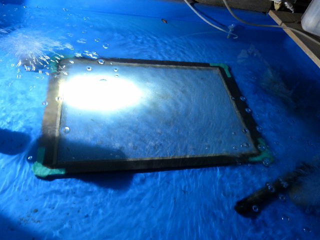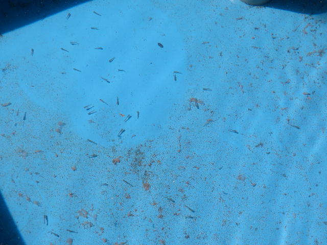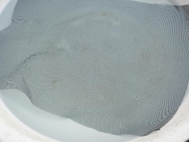 写真は洗面器に網を敷いて受精卵を撒いた状況です。こちらも団子にならず上手に撒けました。落ち着いてるなぁ。